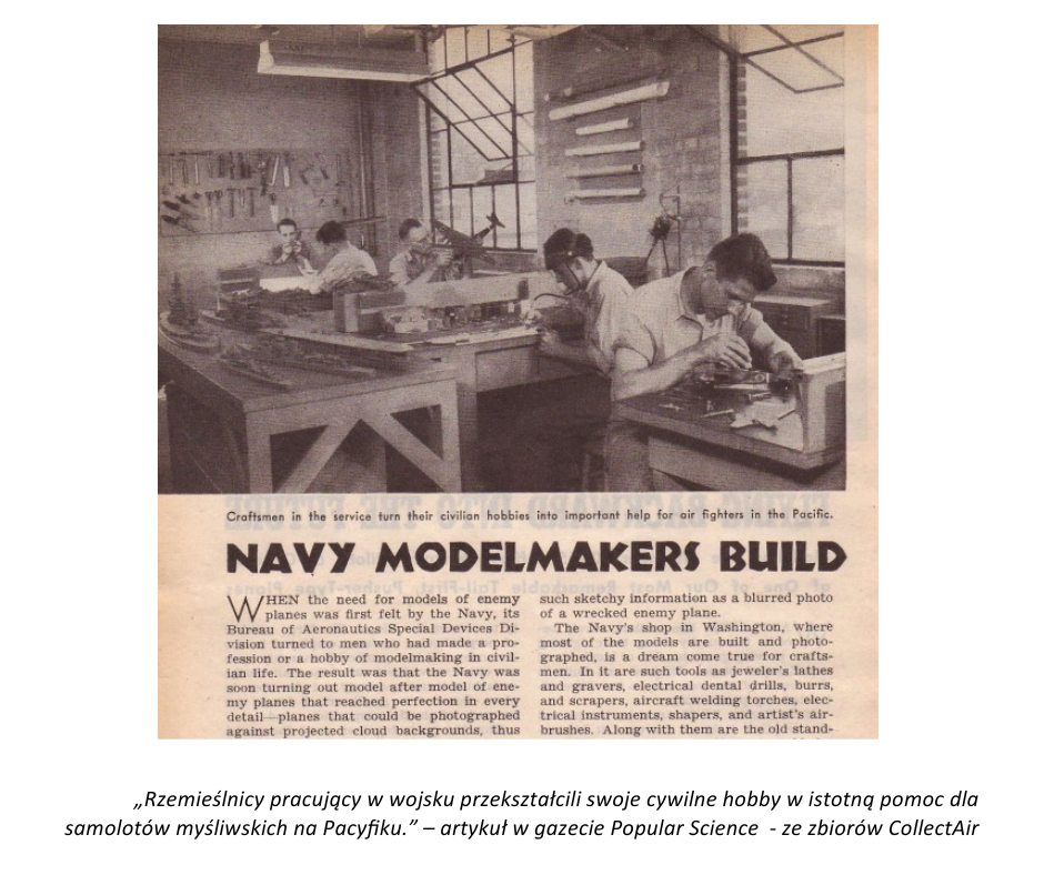 W Stanach Zjednoczonych lotnictwo wojskowe i marynarka korzystały również z prostych, ale bardzo praktycznych modeli tekturowych. Modele te były dostarczane w wyciętym płaskim arkuszu w kopercie. Po złożeniu model stanowił efektowny, trójwymiarowy element szkoleniowy.