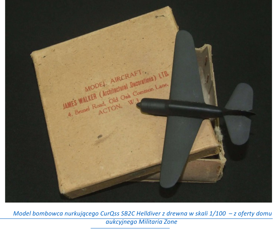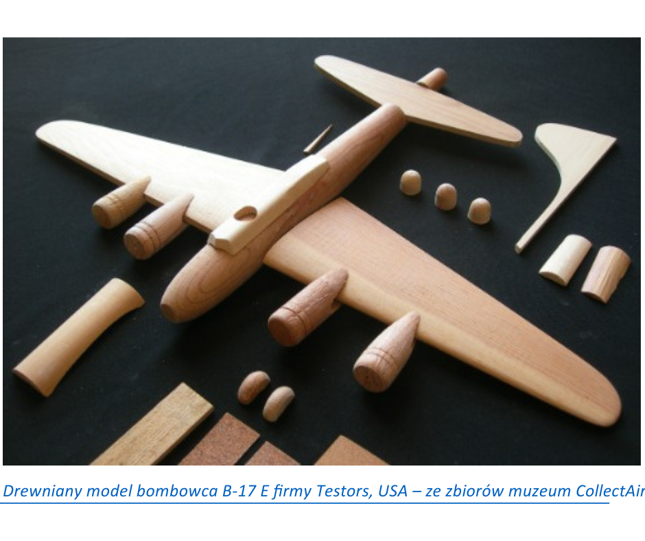 Podczas II wojny światowej produkowano drewniane modele w skali 1/72 dla potrzeb szkolenia członków sił zbrojnych. Zestawy modeli zawierały drewniane i metalowe części, kalkomanie, farby do pomalowania i instrukcje. Elementy przedstawiające kadłub, skrzydła i stateczniki były tylko surowo wycięte z drewna i przypominały drewniane klocki. Taki model praktycznie rzeźbiło się od podstaw przy użyciu różnych narzędzi.